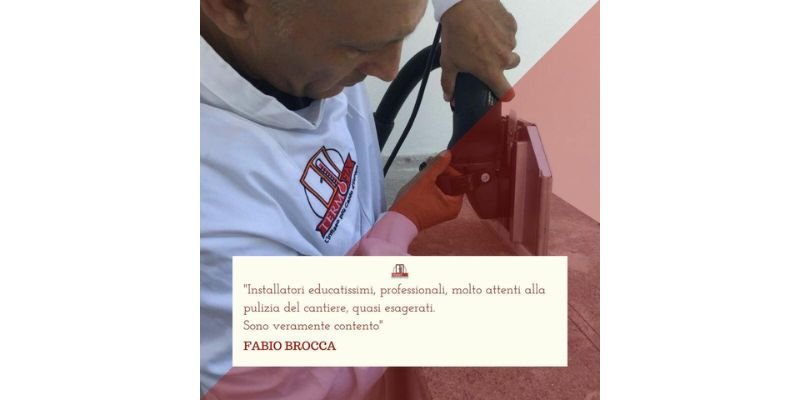 Offriamo la garanzia del lavoro di posa in opera con l'installazione brevettata unica al mondo TERMOFIX, che vi garantisce un risultato eccellente attraverso uno studio approfondito in fase di sopralluogo su ogni vano finestra. In tre anni abbiamo raggiunto il 96,5 % di soddisfazione della nostra clientela dimostrata con le vostre eccellenti recensioni. Grazie al nostro sistema originale e brevettato, siamo stati l'azienda di fiducia per la sostituzione degli infissi dell'ambasciata Messicana a Roma, del Santuario della SS Trinità a Tagliacozzo, dell'Hotel Quirinale a Roma.